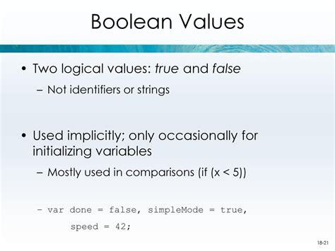 Boolean variables are also essential for logical operations. Using operators like AND, OR, and NOT, you can combine Boolean values to create more complex conditions. For example, let's say you have two Boolean variables: isUserAdmin and isUserActive. You can create a more specific conditional statement by using AND if (isUserAdmin && isUserActive) { // Give the user full access }. This allows you to check if the user is both an admin and active before granting access. Here’s an example using OR: if (isUserAdmin || isModerator) { // Grant access }. This would grant access if the user is either an admin or a moderator. Operators are frequently used to perform complex actions within a program.