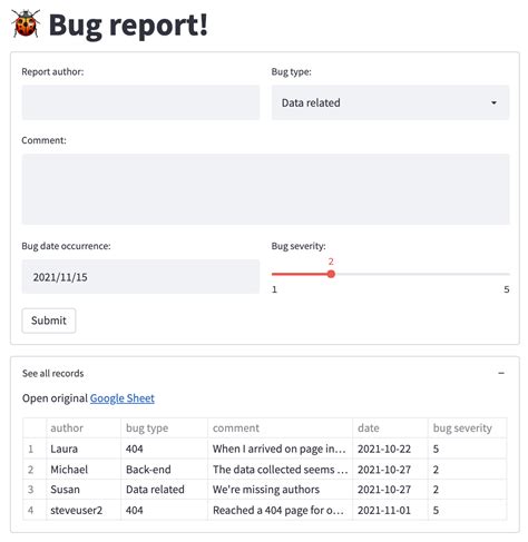 - Users can submit bug reports with screenshots.