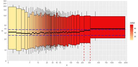 boxplot.stats()or manually calculate these values using functions likemedian(),quantile(), and so on. - Calculate Group Positions and Widths: Determine the positions of the boxplots along the x-axis and their widths based on the group sizes. You can use the same approach as in the first method, normalizing the group sizes and calculating cumulative positions.